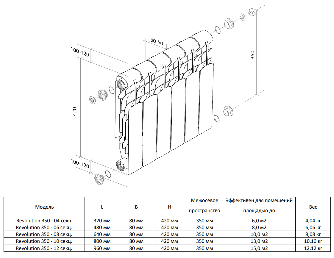 | Теплоотдача, вт | |