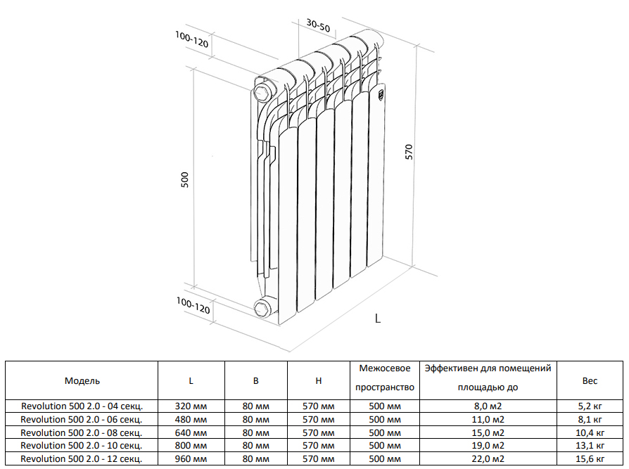 Алюминиевый радиатор Royal Thermo Revolution 500 2.0 - 10 секц. Bianco Traffico