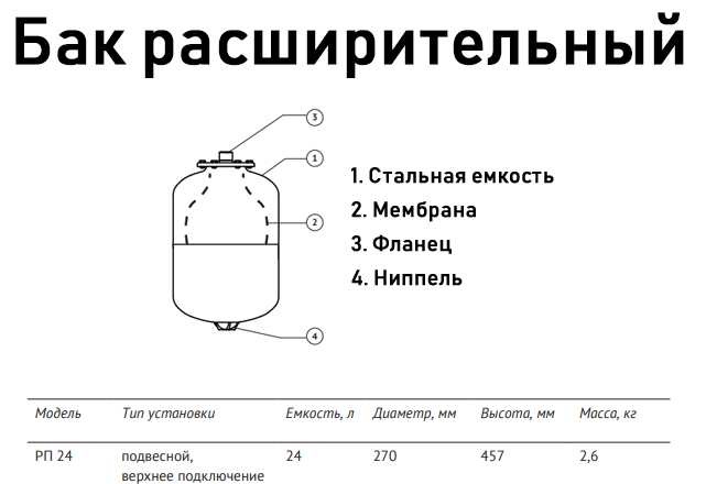 Бак расширительный Unipump РП 24 НР 1" DN 270 PN 6 мембранный для отопления