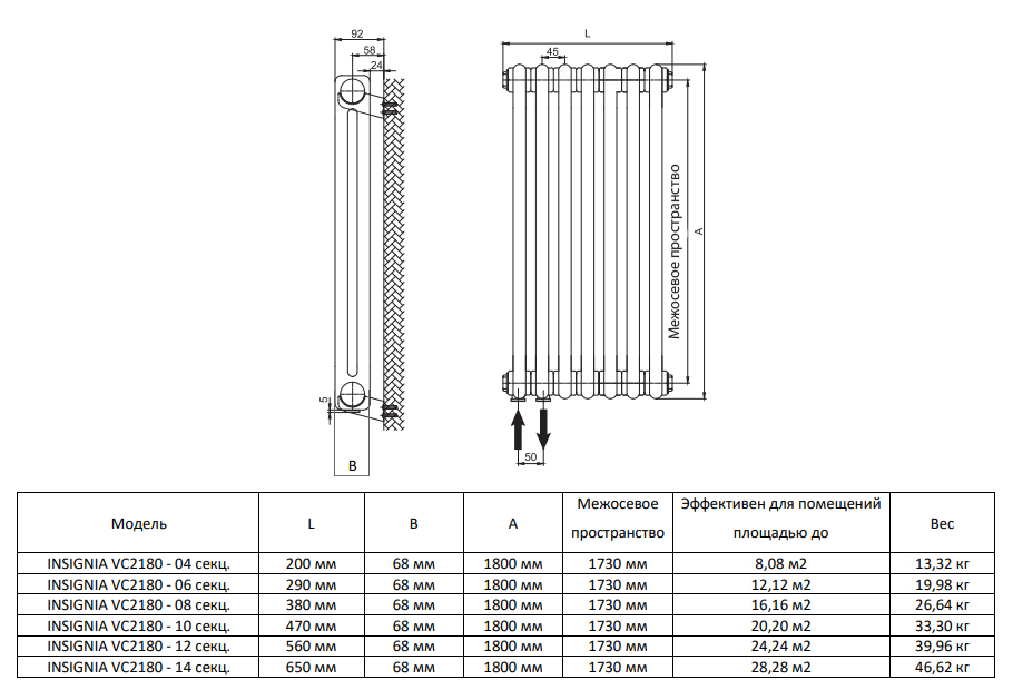 Дизайн-радиатор Royal Thermo INSIGNIA VC2180 - 06 секц. RAL9005m