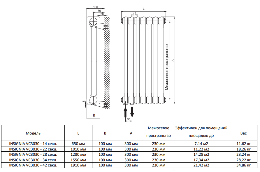 Дизайн-радиатор Royal Thermo INSIGNIA VC3030 - 34 секц. RAL9016