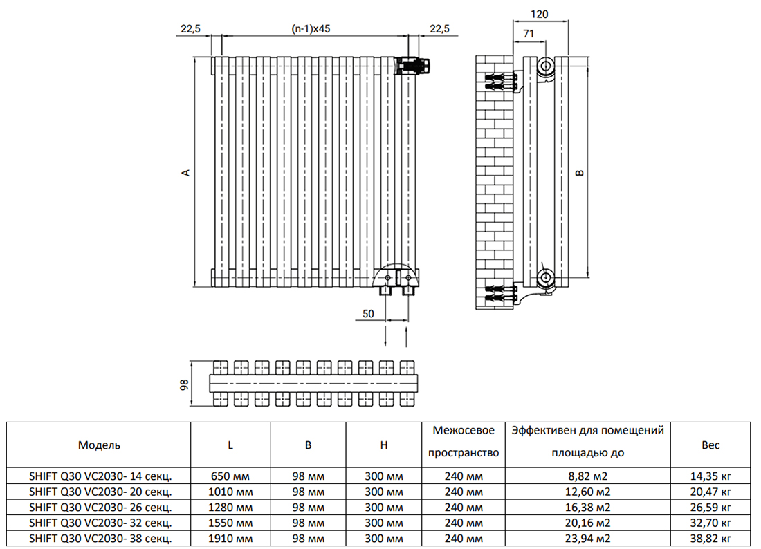 Дизайн-радиатор Royal Thermo SHIFT Q30 VC2030 - 20 секц. RAL9016