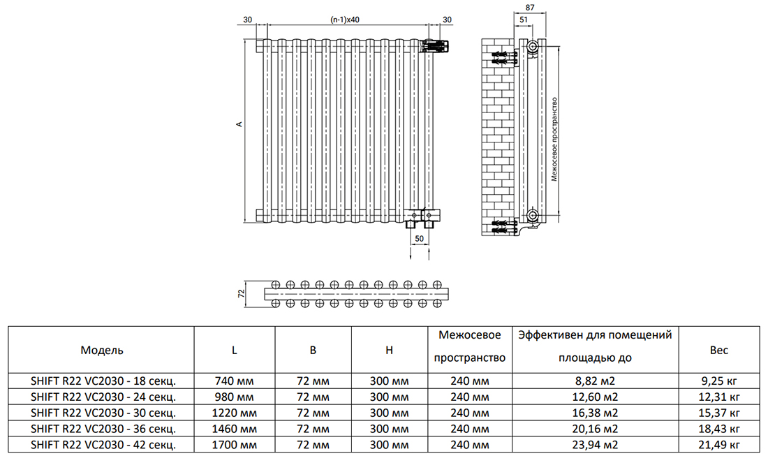 Дизайн-радиатор Royal Thermo SHIFT R22 VC2030 - 42 секц. RAL9016