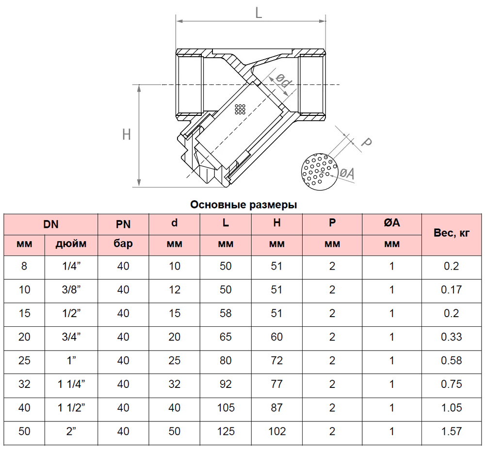 Фильтр сетчатый РАШВОРК 6460 Ду40 Ру40 нержавеющий резьбовой 6460-040-40