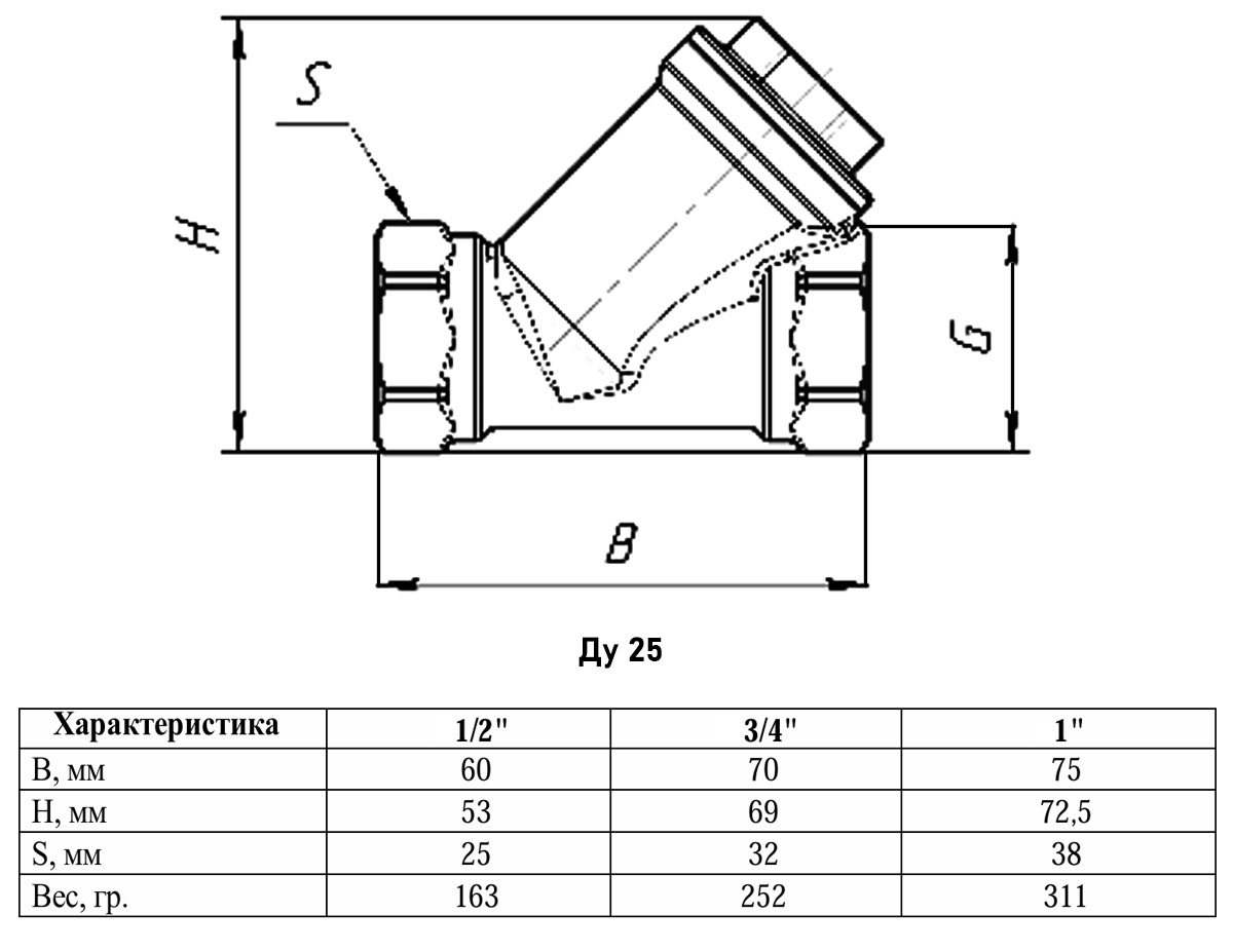 Фильтр сетчатый VALFEX STANDART VF.192 ВР 1" Ду 25 Ру 25 никелированный латунный