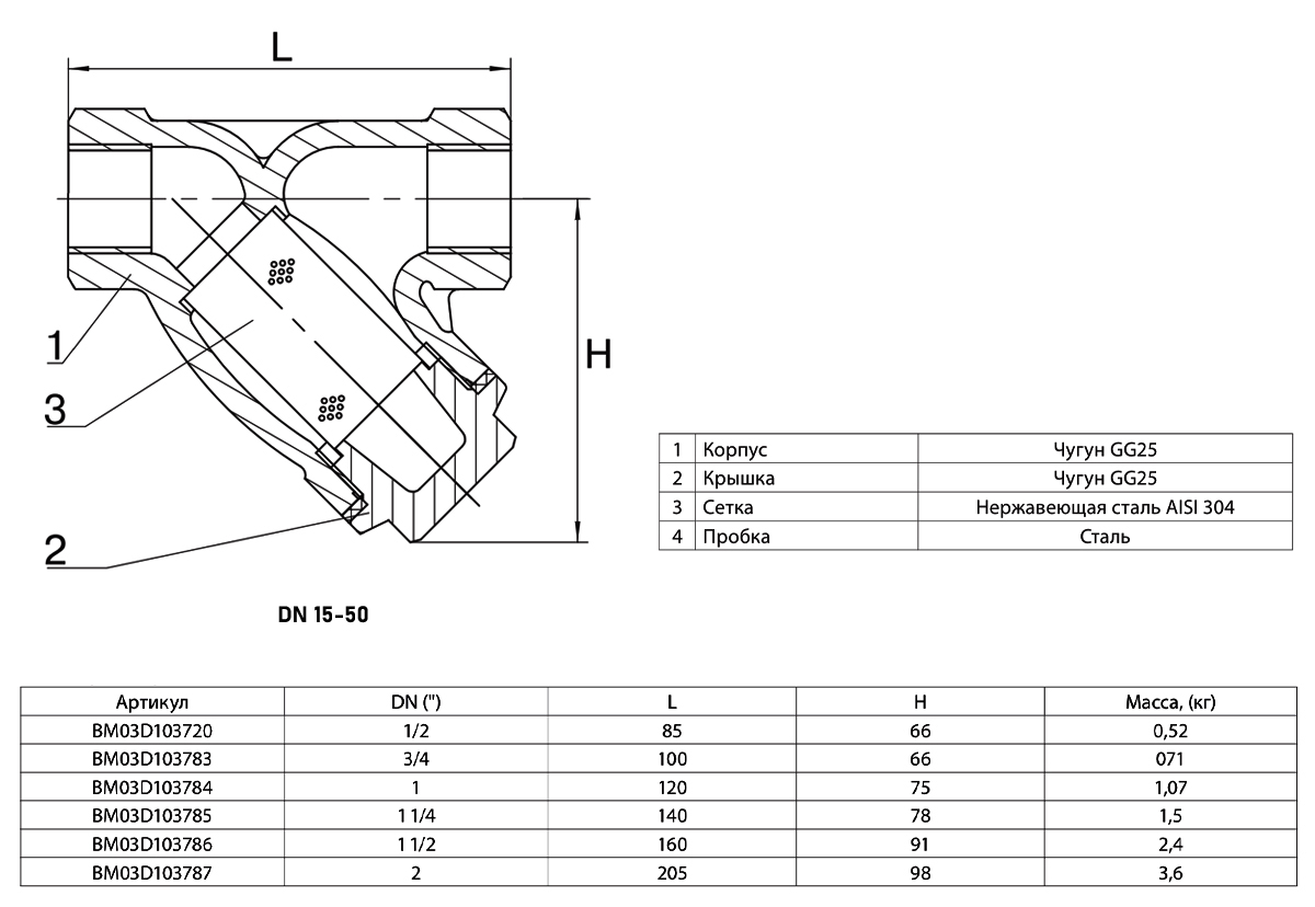 Фильтр сетчатый ADL IS15 DN 15 PN 16 чугунный резьбовой BM03D103720