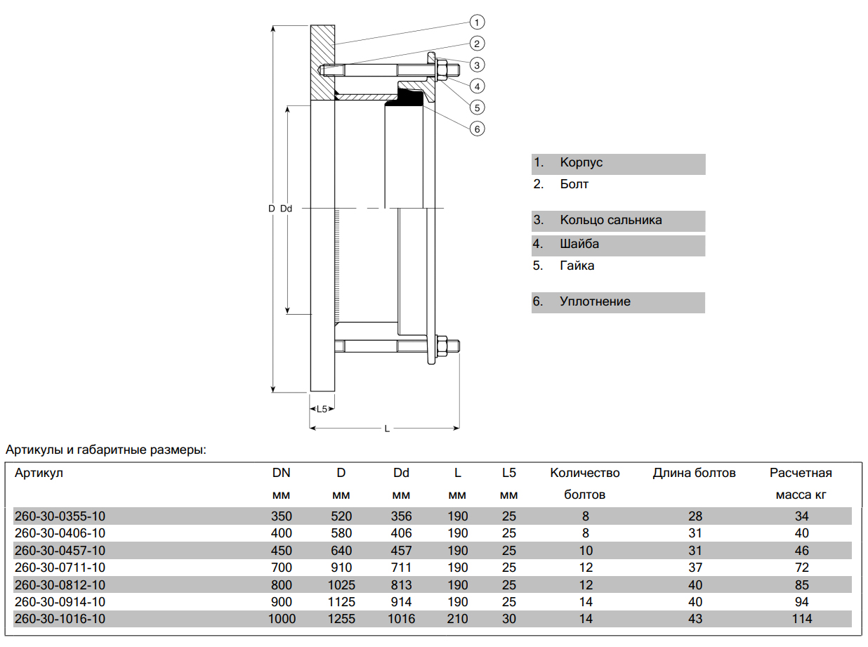 Фланцевый адаптер AVK 260/30 DN 400 PN 16 нефиксирующего типа для труб из ПВХ и стали