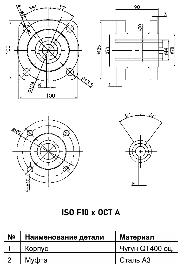 ИсполнениеISO F10 вал 20 шпонка 6 x ОСТ А