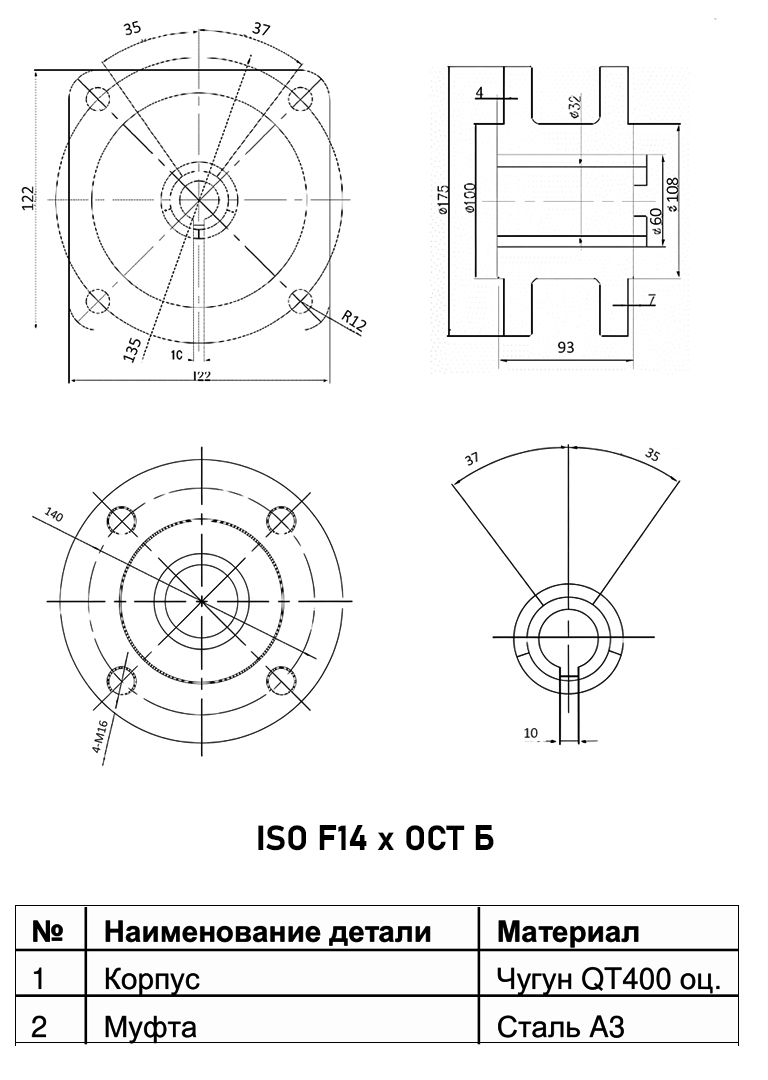 ИсполнениеISO F14 вал 32 шпонка 10 x ОСТ Б