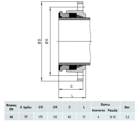 Фланец HAWLE 7602 DN 60/77 фиксирующий