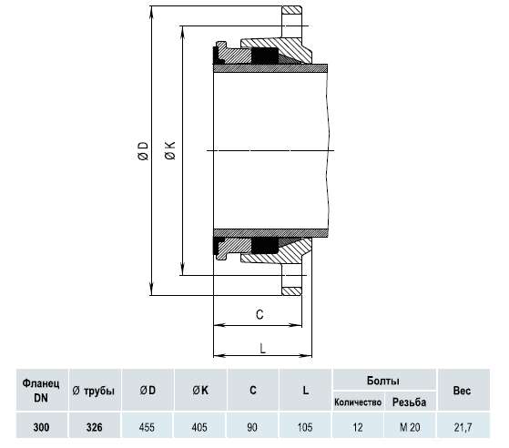Фланец HAWLE 7602 DN 300/326 фиксирующий