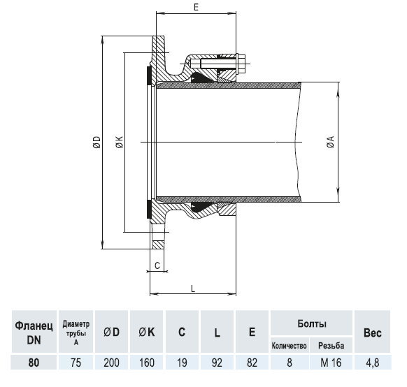 Фланец HAWLE 0400 DN 80/75 System 2000 для ПЭ и ПВХ труб