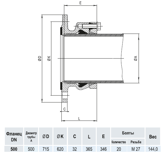 Фланец HAWLE 0400 DN 500/500 System 2000 для ПЭ и ПВХ труб