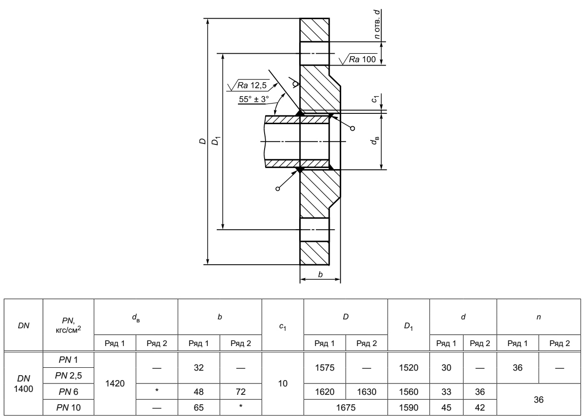 Фланец 1400-10-01-1-В-10Х17Н13М2Т-IV ГОСТ 33259-2015 нержавеющий плоский приварной Ду 1400 Ру 10