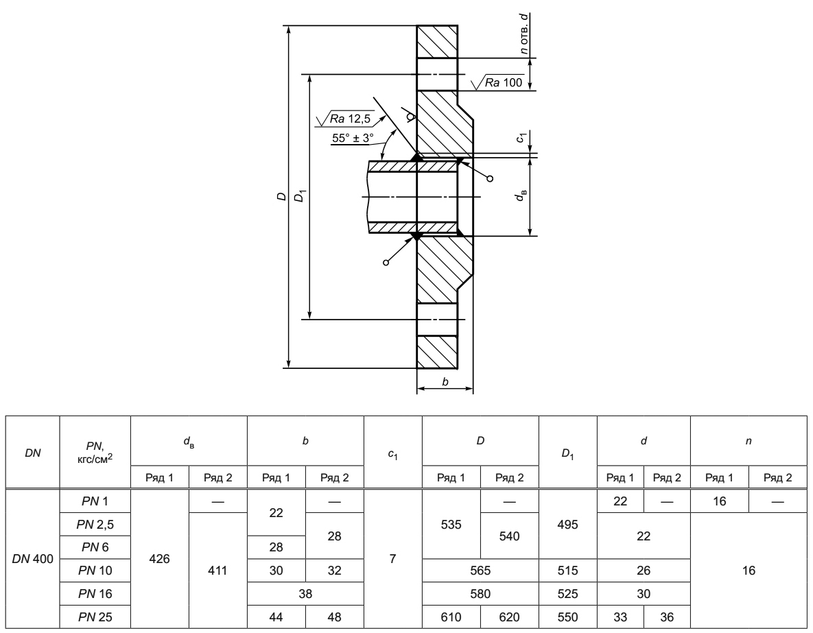 Фланец 400-10-01-1-В-10Х17Н13М2Т-IV ГОСТ 33259-2015 нержавеющий плоский приварной Ду 400 Ру 10