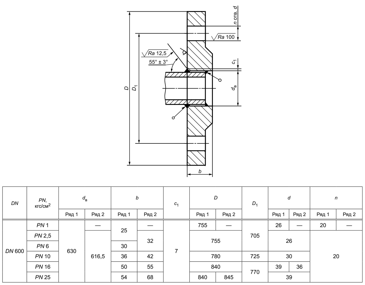 Фланец 600-10-01-1-В-10Х17Н13М2Т-IV ГОСТ 33259-2015 нержавеющий плоский приварной Ду 600 Ру 10