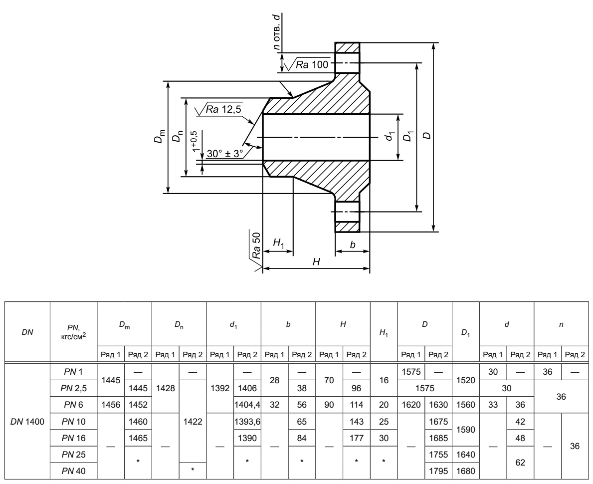 Фланец 1400-63-11-1-B-12Х18Н10Т-IV ГОСТ 33259-2015 нержавеющий воротниковый приварной встык Ду 1400 Ру 63