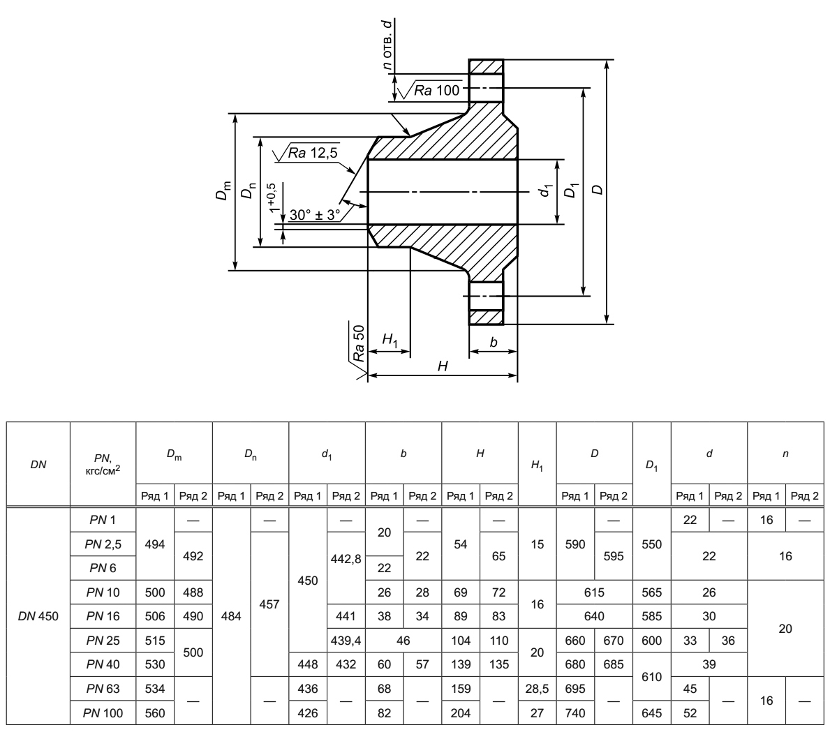 Фланец 450-160-11-1-В-12Х18Н10Т-IV ГОСТ 33259-2015 нержавеющий воротниковый приварной встык Ду 450 Ру 160