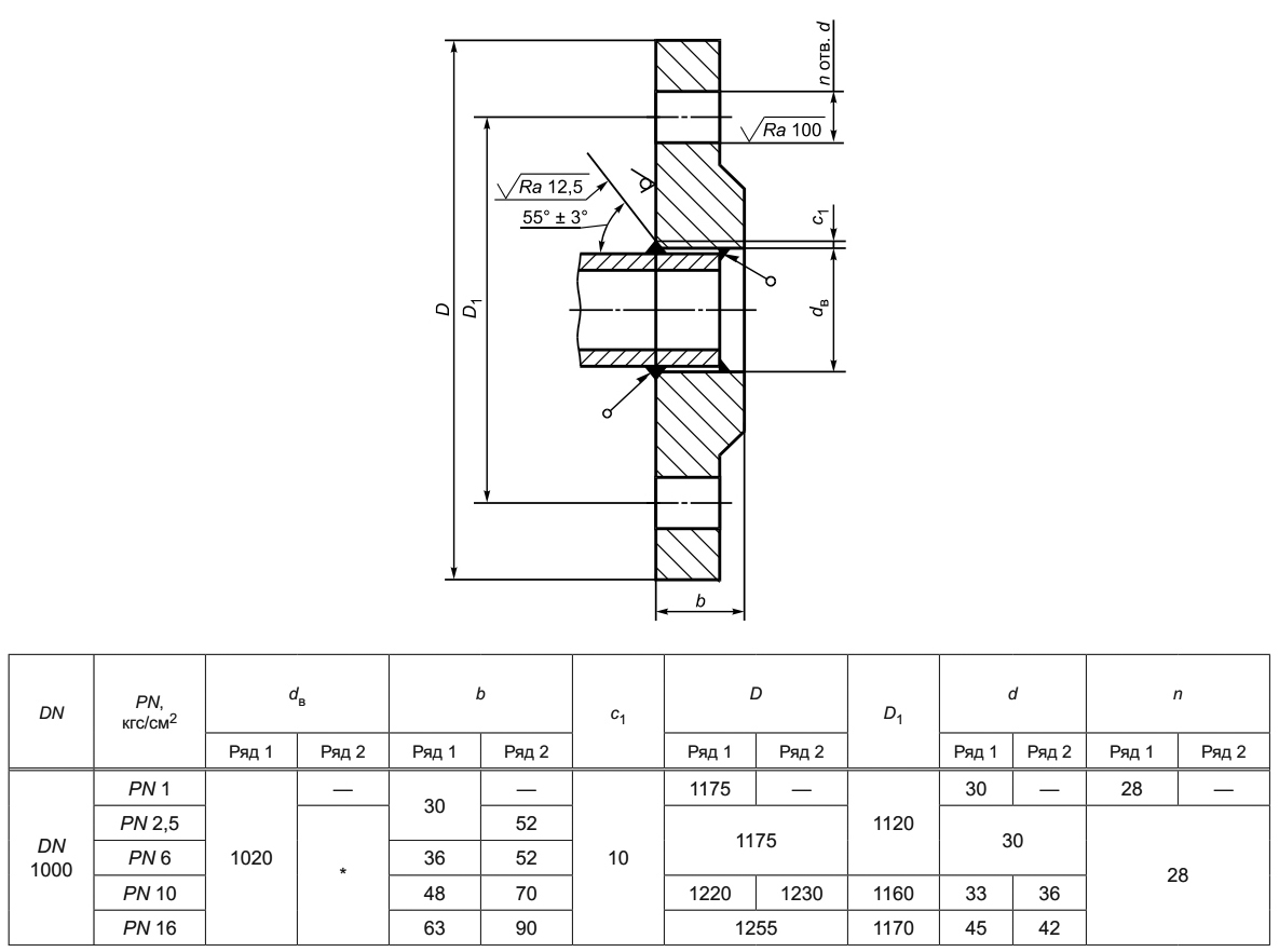 Фланец 1000-6-01-1-В-Ст.20-IV ГОСТ 33259-2015 стальной плоский приварной Ду 1000 Ру 6