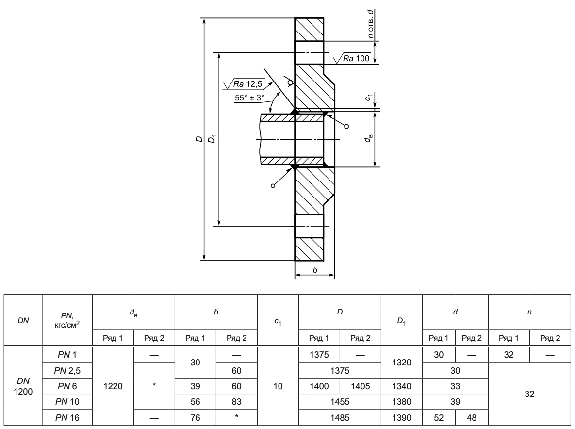 Фланец 1200-6-01-1-В-09Г2С-IV ГОСТ 33259-2015 стальной плоский приварной Ду 1200 Ру 6
