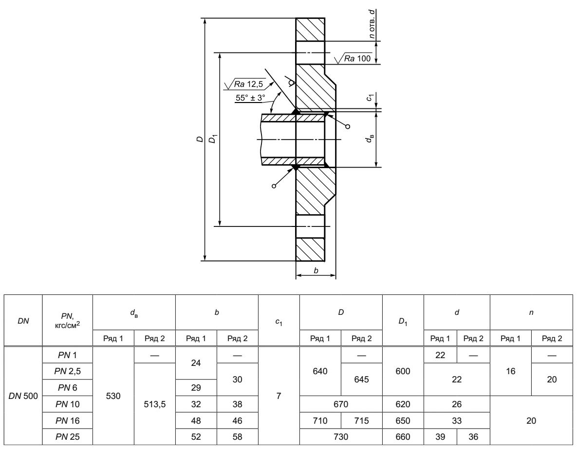Фланец 500-6-01-1-В-Ст.20-IV ГОСТ 33259-2015 стальной плоский приварной Ду 500 Ру 6