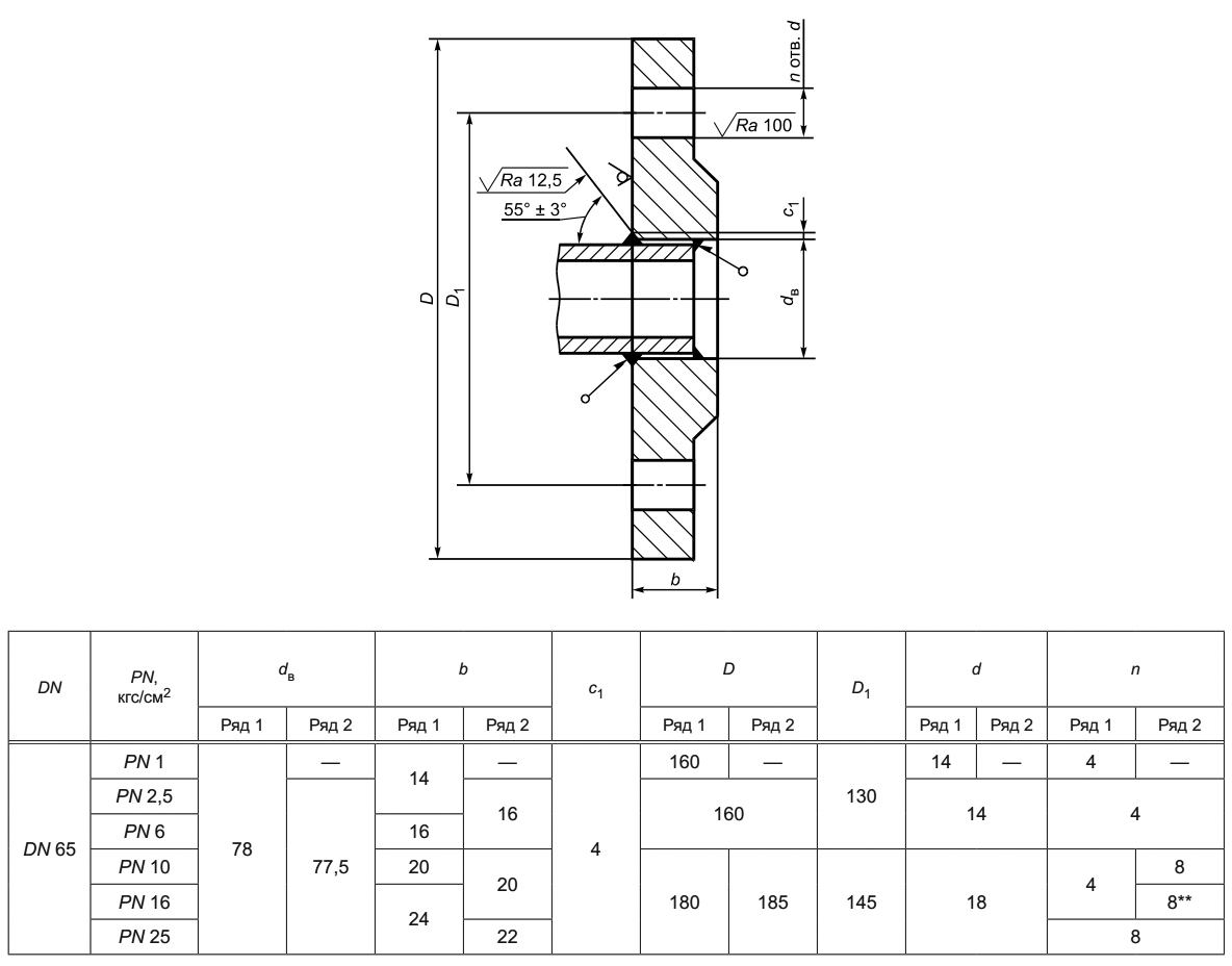 Фланец 65-10-01-1-В-Ст.20-IV ГОСТ 33259-2015 стальной плоский приварной Ду 65 Ру 10