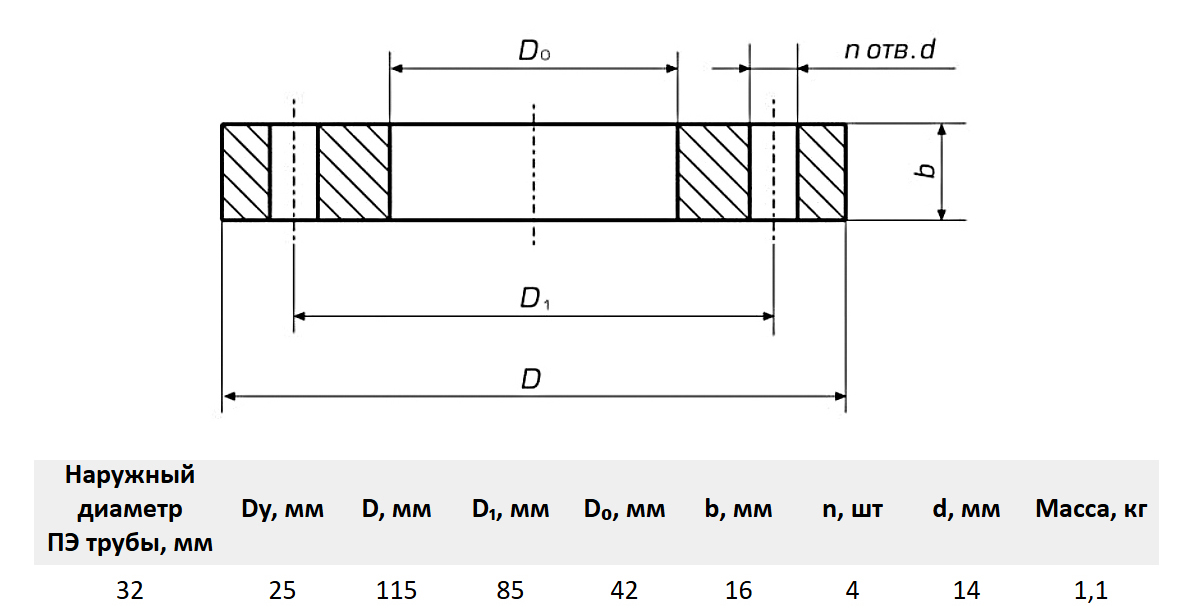 Фланец стальной прижимной для ПЭ труб 25/32 Ру25