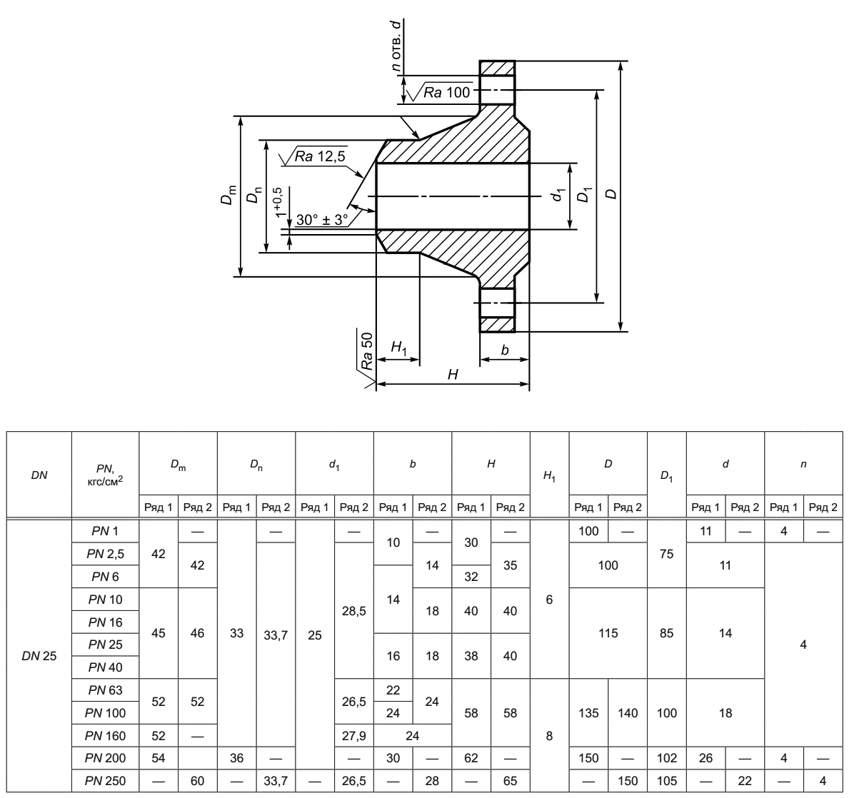 Фланец 25-6-11-1-В-Ст. 20-IV ГОСТ 33259-2015 стальной воротниковый приварной встык Ду 25 Ру 6