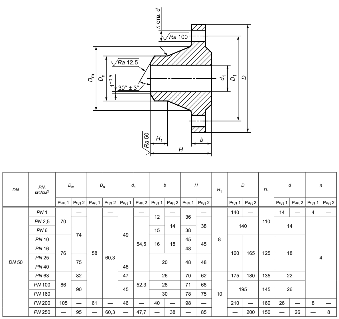 Фланец 50-40-11-1-В-09Г2С-IV ГОСТ 33259-2015 стальной воротниковый приварной встык Ду 50 Ру 40