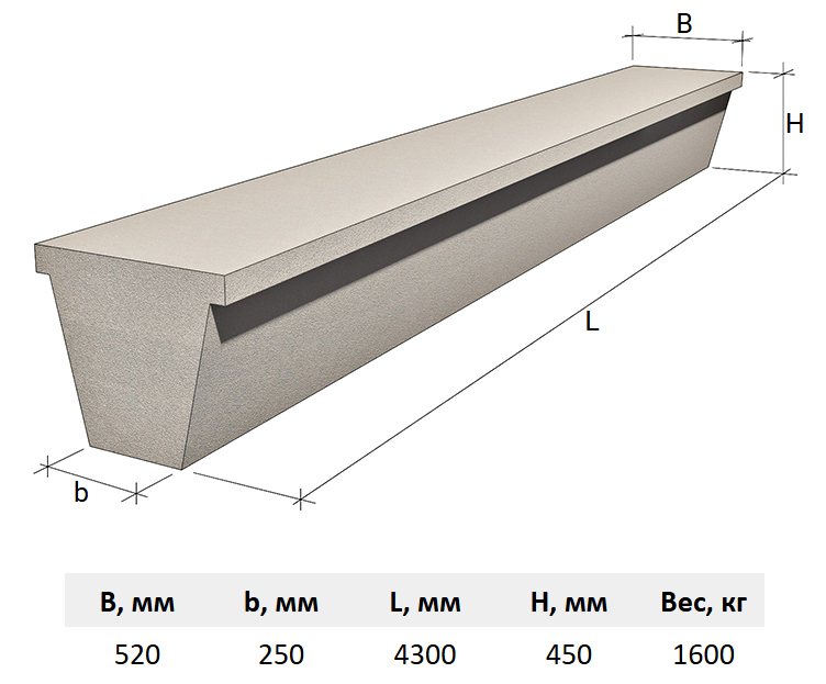 Фундаментная балка ФБ 6-32 Серия 1.415-1 Выпуск 1 (4300x520/250x450)