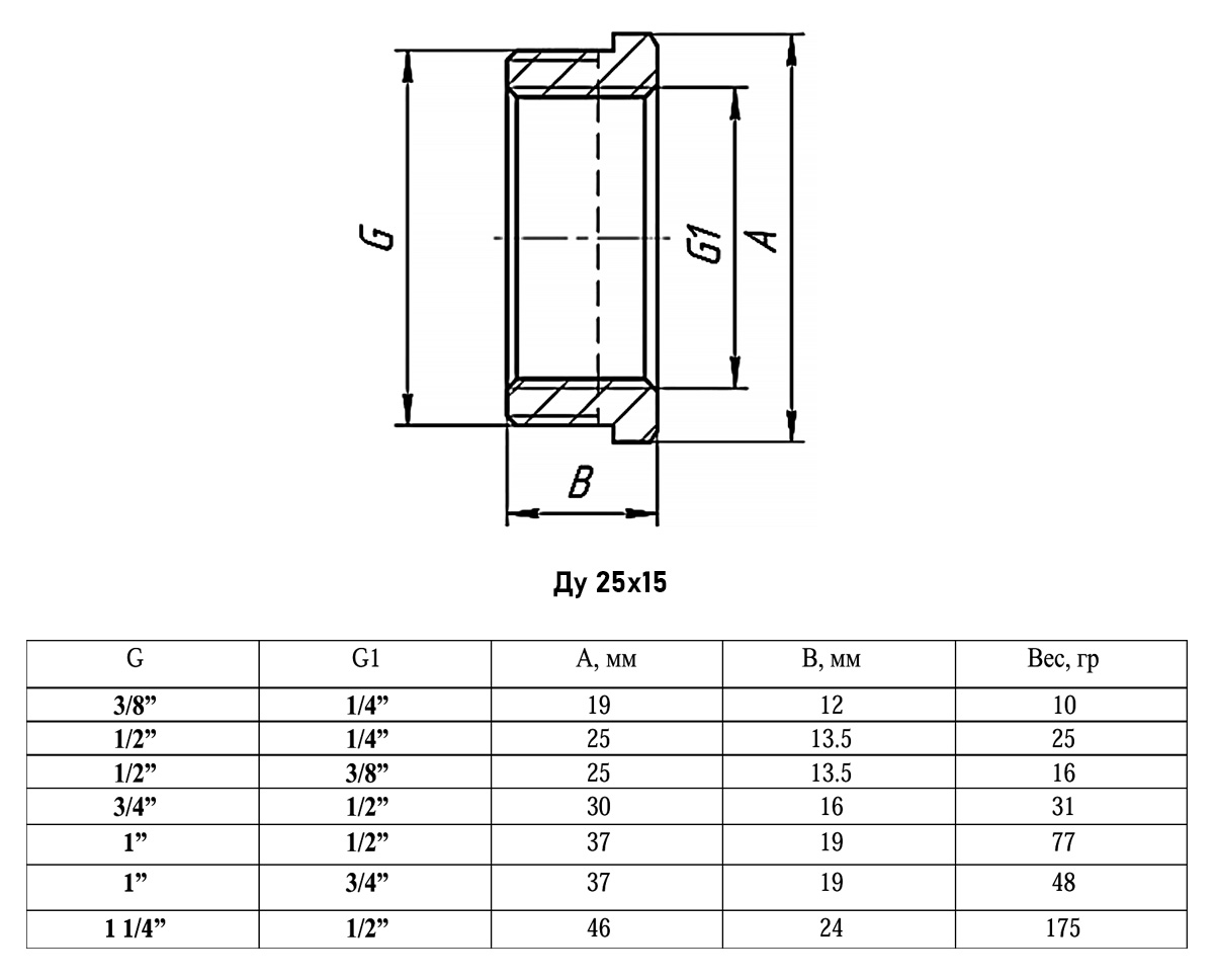 Футорка VALFEX VF.581 ВР-НР 1"x1/2" Ду 25x15 Ру 40 никелированная латунная