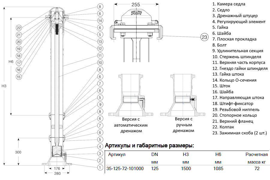 Гидрант пожарный подземный AVK 35/72 H=1500мм