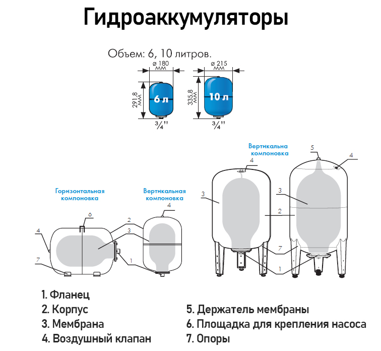 Гидроаккумулятор Джилекс В 10 НР 3/4" DN 215 PN 8 мембранный вертикальный