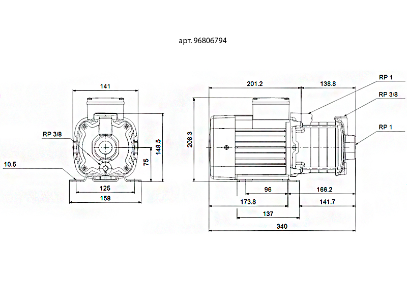 Вид насосагоризонтальный