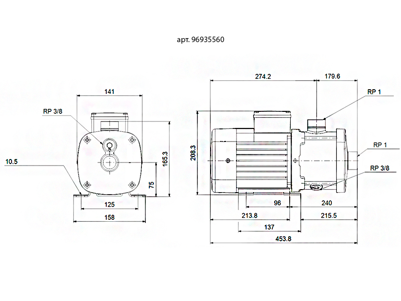 Горизонтальный многоступенчатый насос Grundfos CM 1-9 A-R-G-E-AQQE A-A-A-N