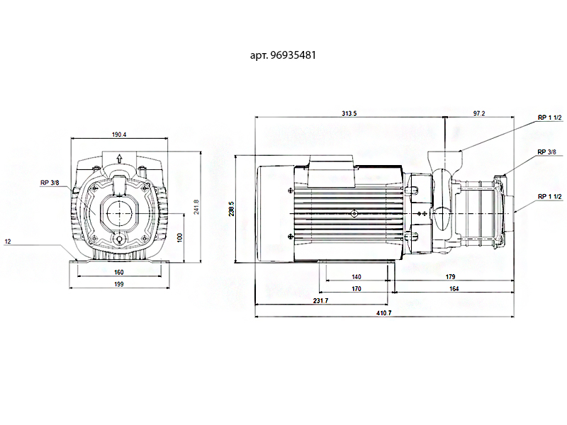 Вид насосагоризонтальный