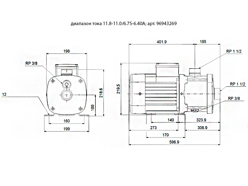 Диапазон тока насоса11.8-11.0/6.75-6.40А