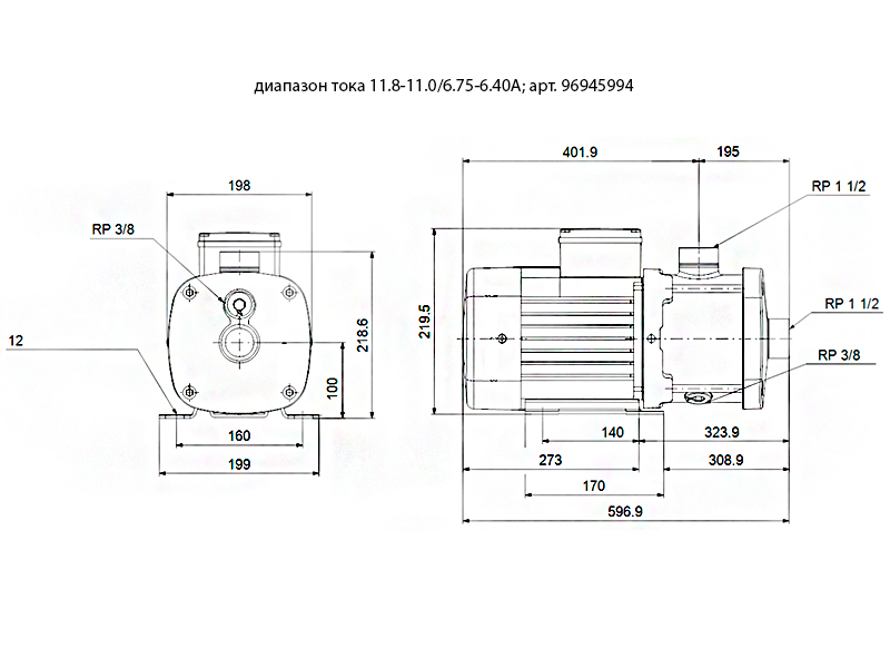 Диапазон тока насоса11.8-11.0/6.75-6.40А