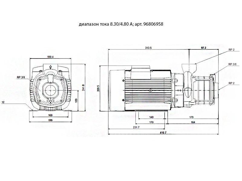 Диапазон тока насоса8.30/4.80 A