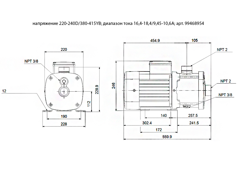 Диапазон тока насоса16,4-18,4/9,45-10,6A