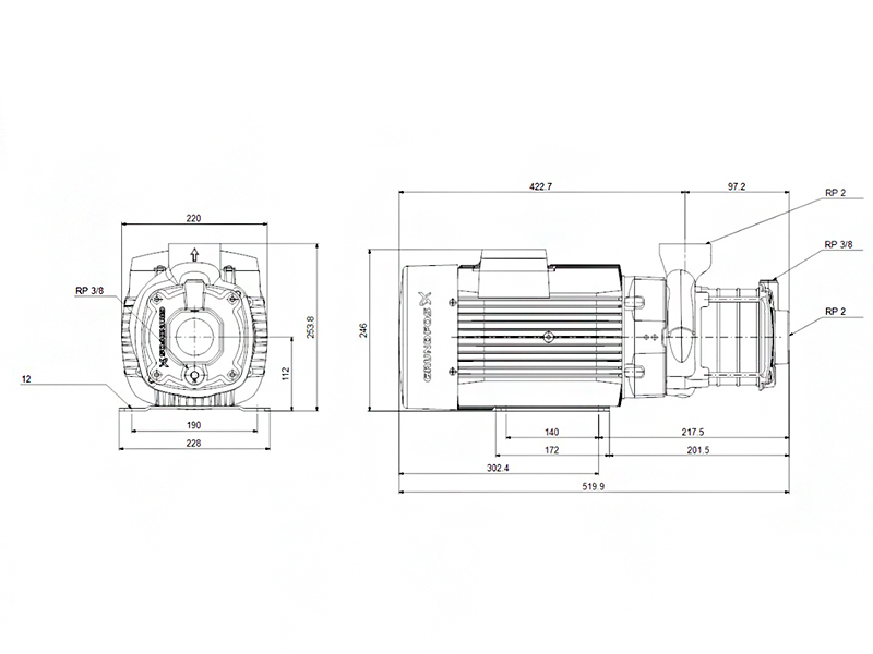 Горизонтальный многоступенчатый насос Grundfos CM 25-2 A-R-A-E-AQQE E1-A-A-N
