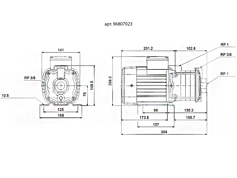 Вид насосагоризонтальный