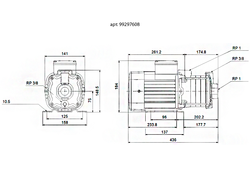 Вид насосагоризонтальный