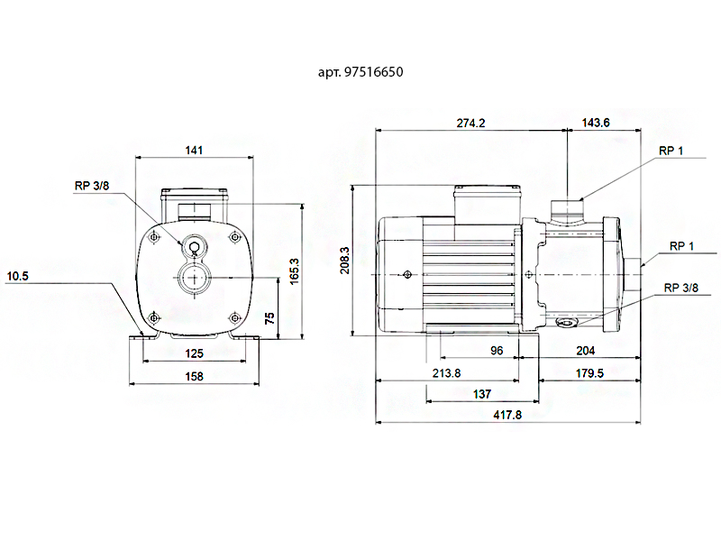 Горизонтальный многоступенчатый насос Grundfos CM 3-7 A-R-G-E-AQQE C-A-A-N