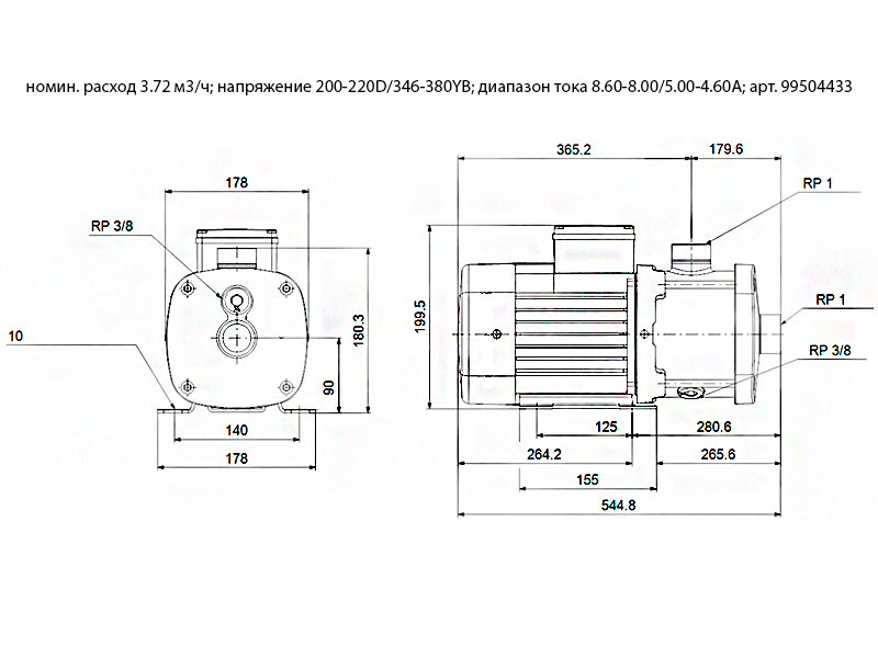 Диапазон тока насоса8.60-8.00/5.00-4.60А