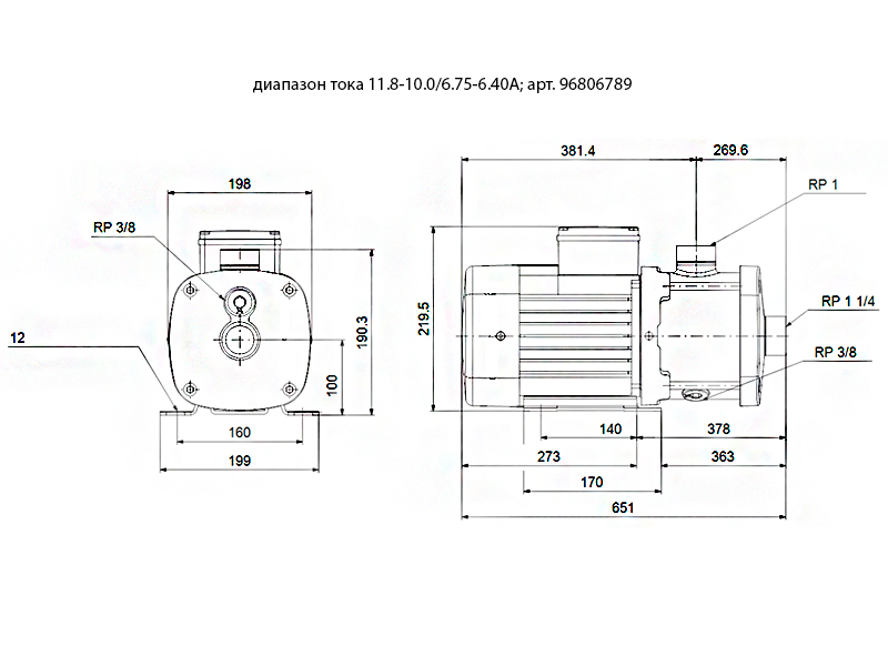 Диапазон тока насоса11.8-10.0/6.75-6.40А
