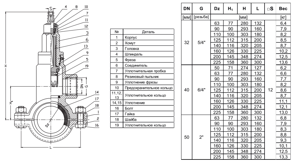 Хомут Jafar 3250 DN 32 PN 16 с вентилем для врезки
