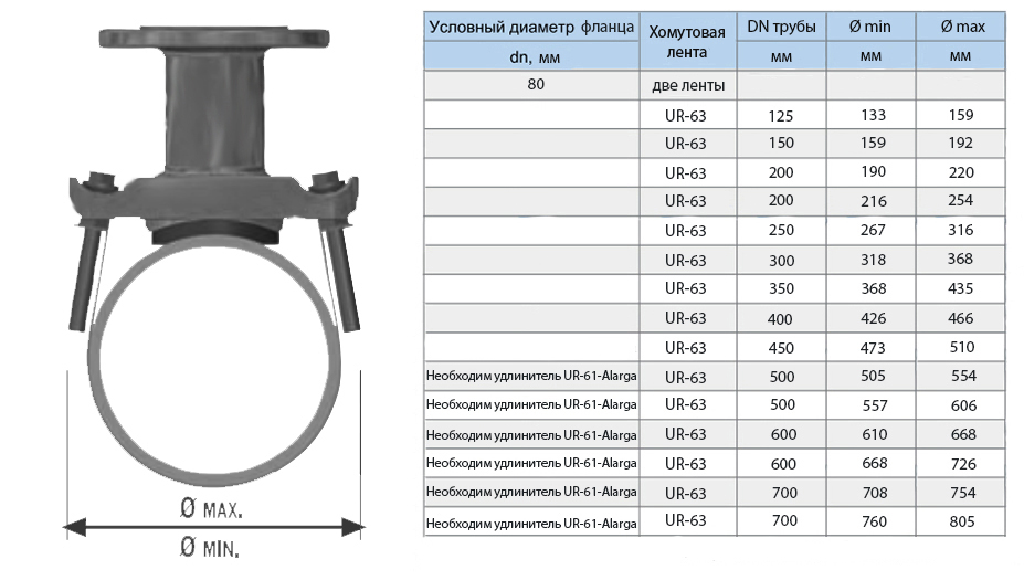 Хомут седловой фланцевый UR-CAST UR-6163 DN 80/ 760-805 мм PN 10/16 чугунный