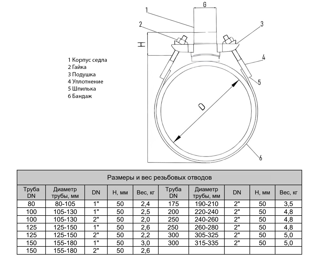 Хомутовый отвод резьбовой DN 300х2" для трубы 315-335 мм