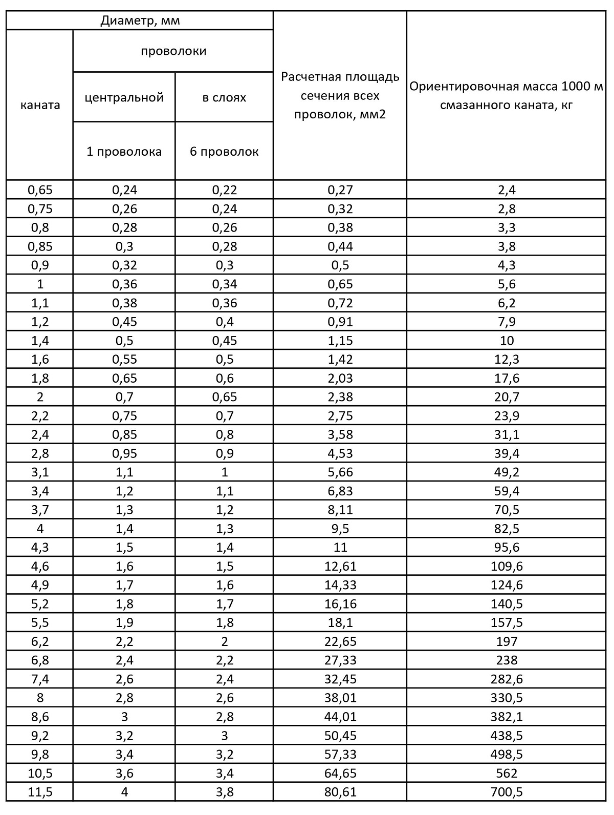 Масса 1000 м смазанного каната700 кг